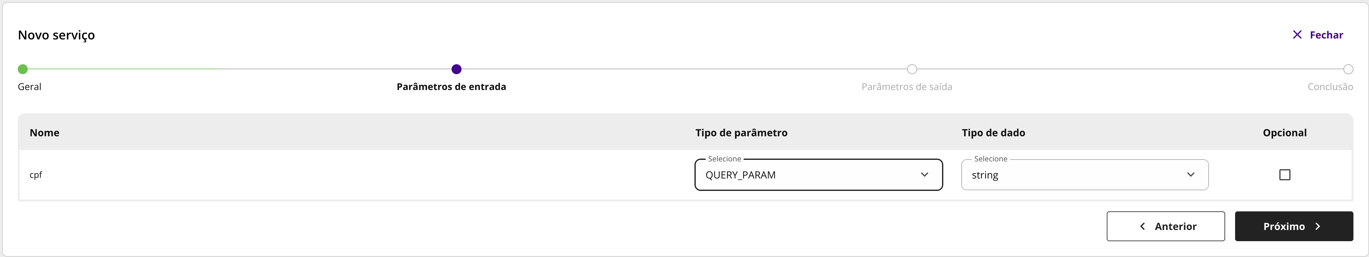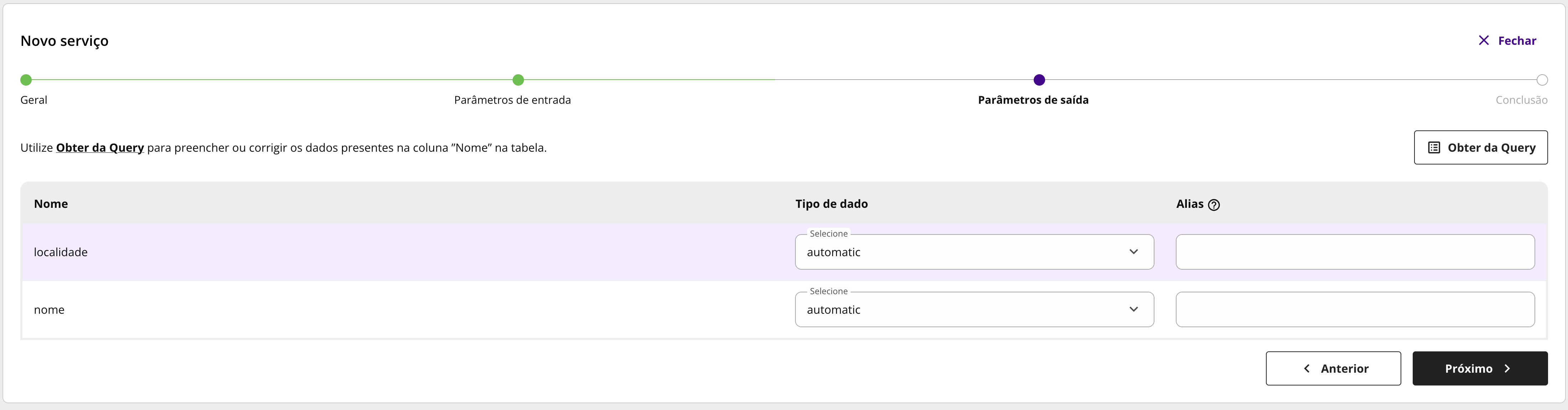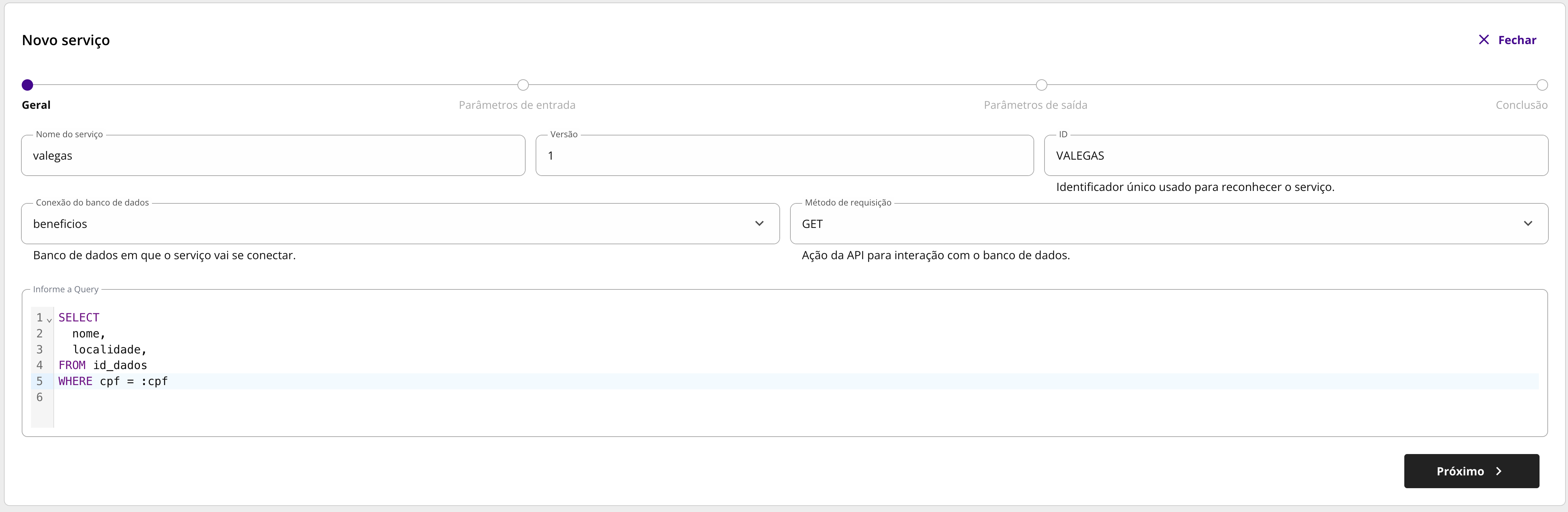 A próxima tela mostra automaticamente os parâmetros encontrados na query (variáveis após os :).