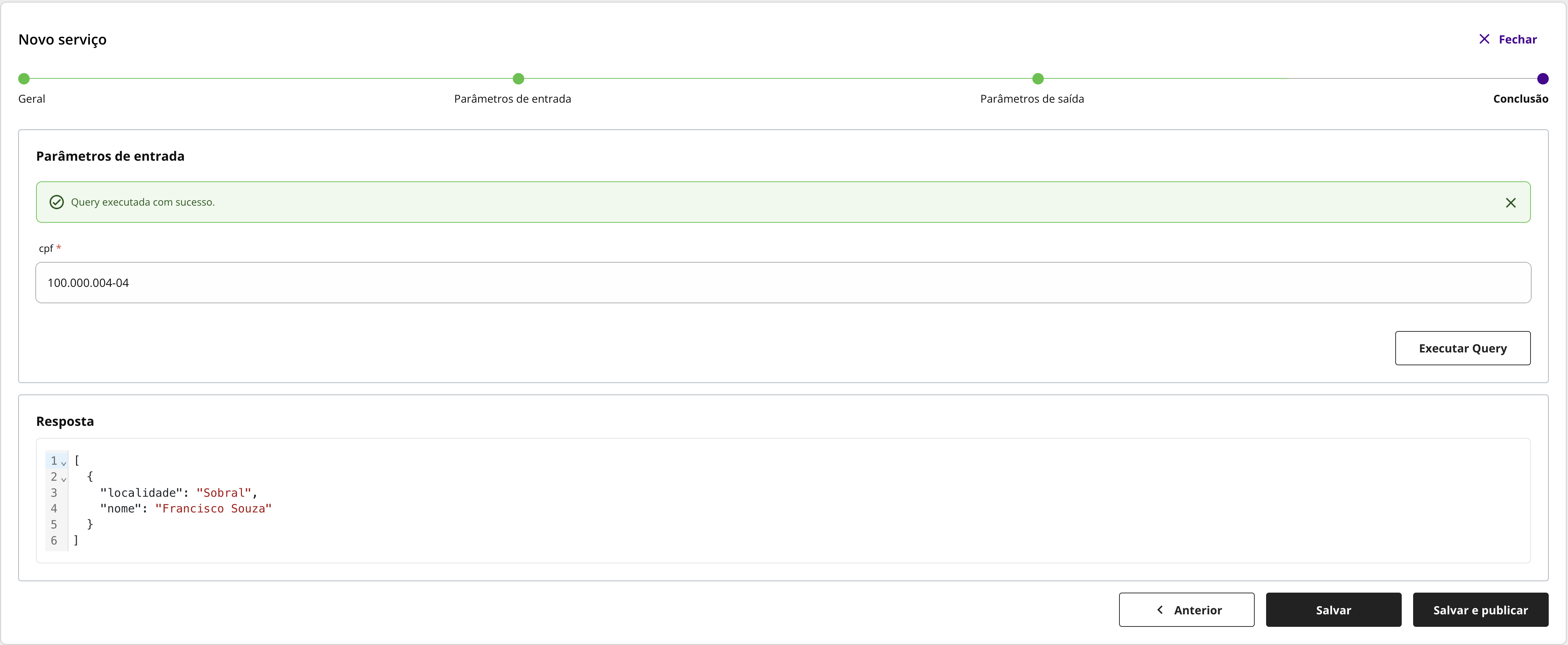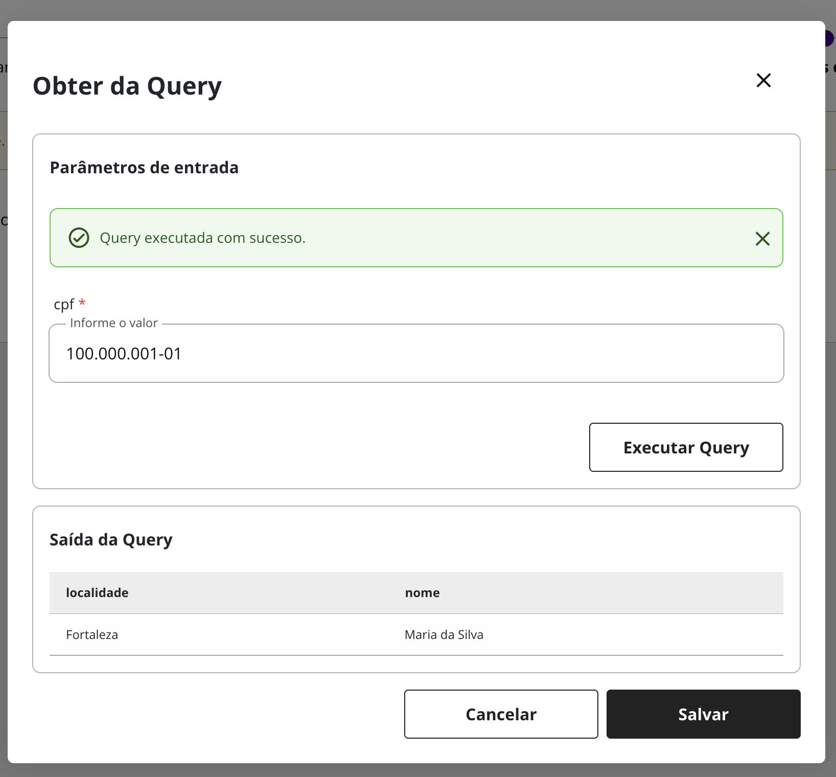 - Uma tela será aberta solicitando valores para os parâmetros obrigatórios da query.